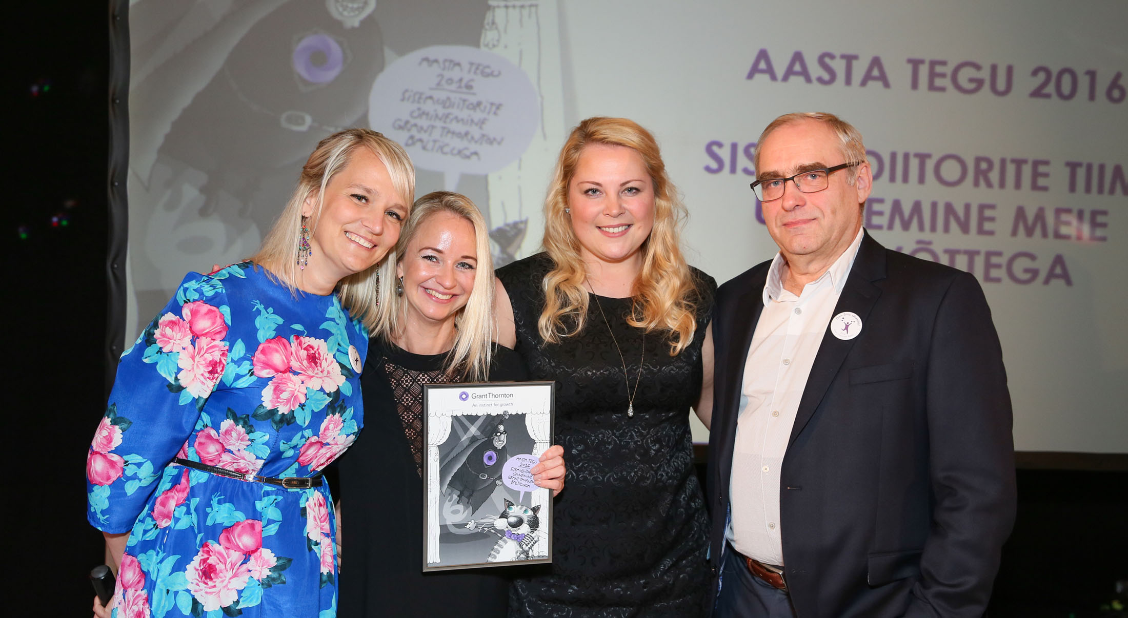 The team of Interna OÜ joined Grant Thornton Baltic in 2016. Pictured (from left): Internal Auditor and Head of Business Risk Services Siiri Antsmäe (now Viil), internal auditors Krisi Pungas and Marin Jakobson (now Korela) with Mati Nõmmiste at the company’s Christmas party.