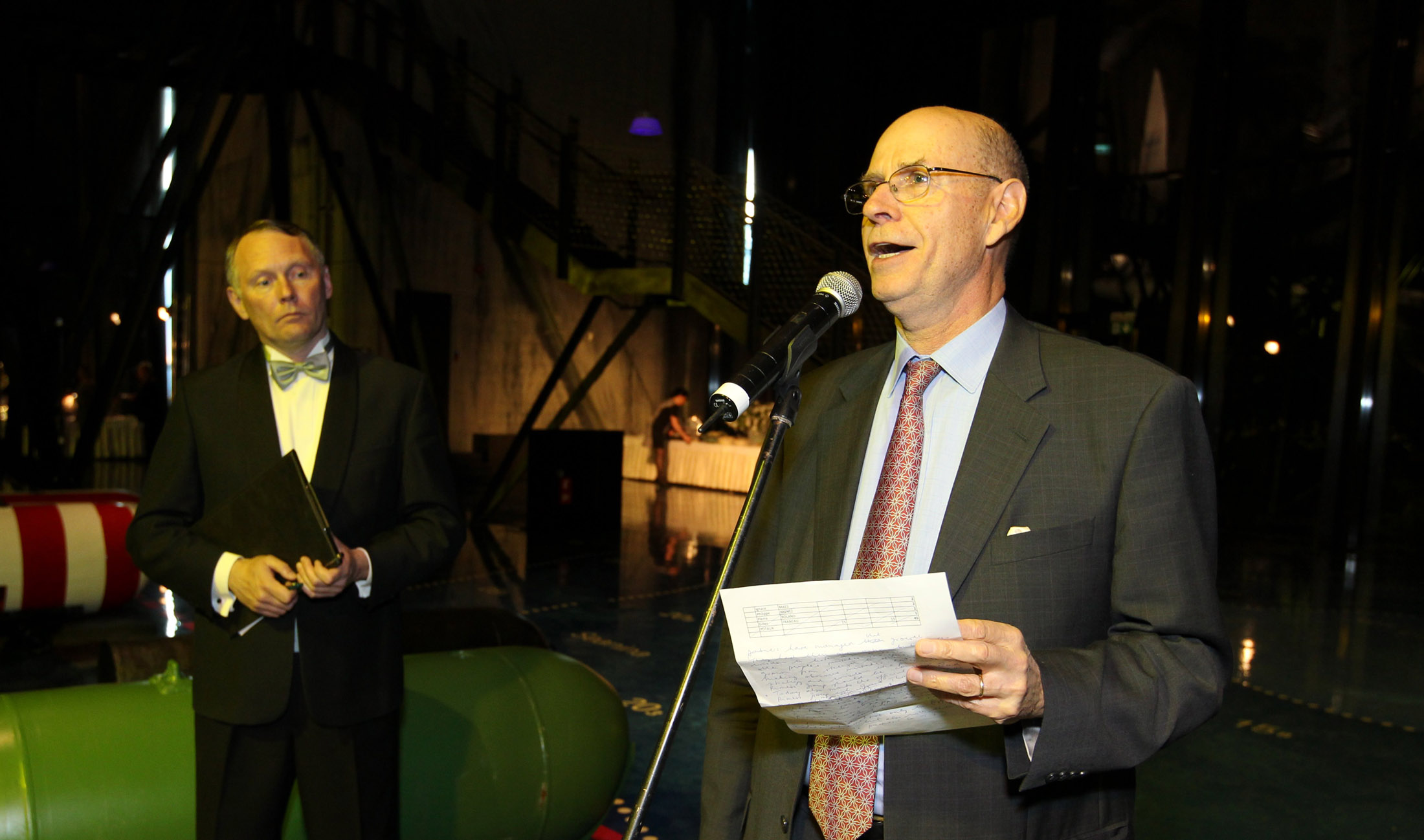 Former head of MRI Europe Jérôme Adam (right), who later became a consultant to Rimess and Grant Thornton Baltic, speaking at the anniversary celebrations of Grant Thornton Baltic at the Seaplane Harbour in 2012. On the left is MC Andres Dvinjaninov.