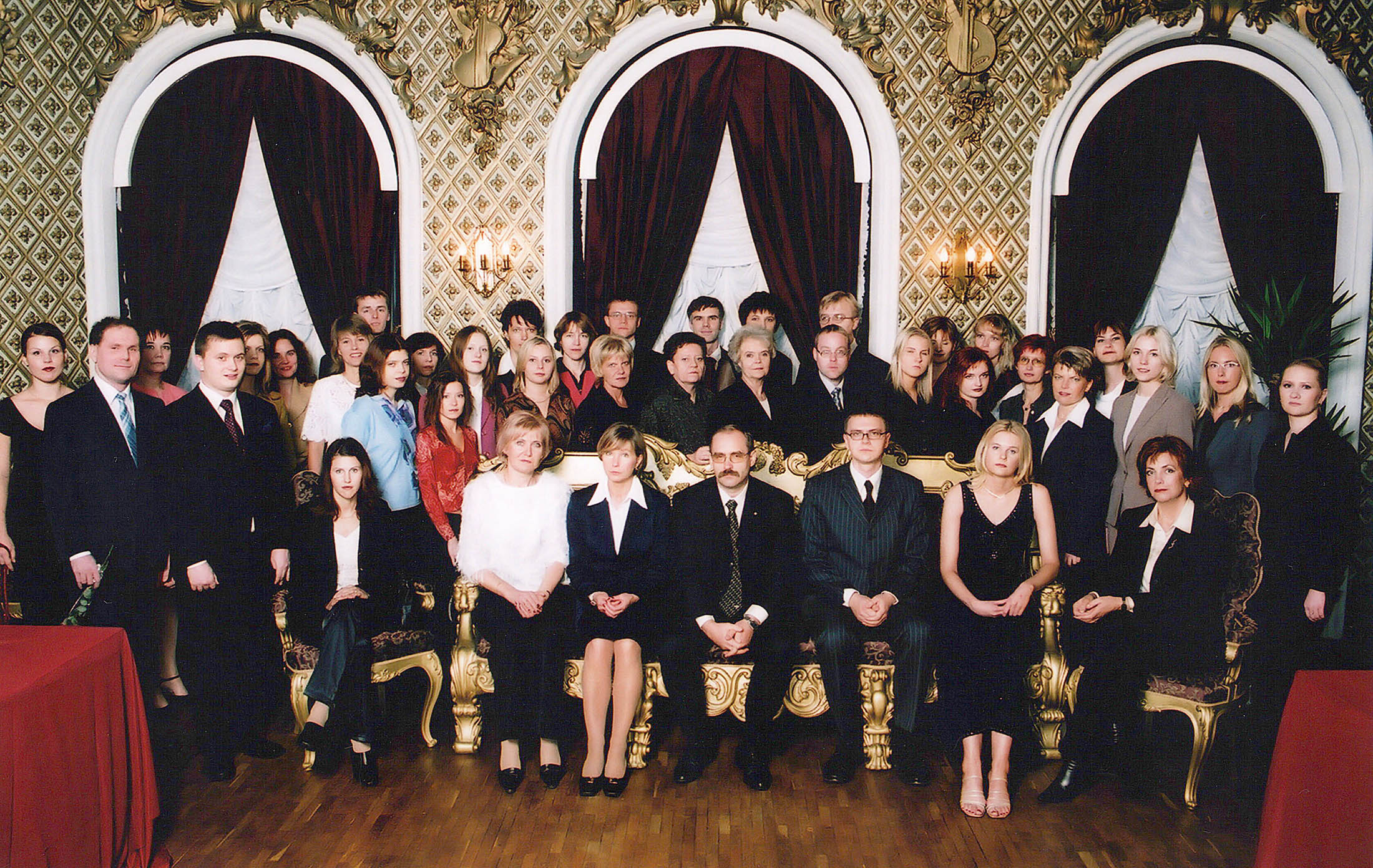 In ten years, Rimess grew into an accounting, audit and business advisory firm with 40 employees. Pictured: the team at the anniversary party held at the Russian Theatre in 2002.
