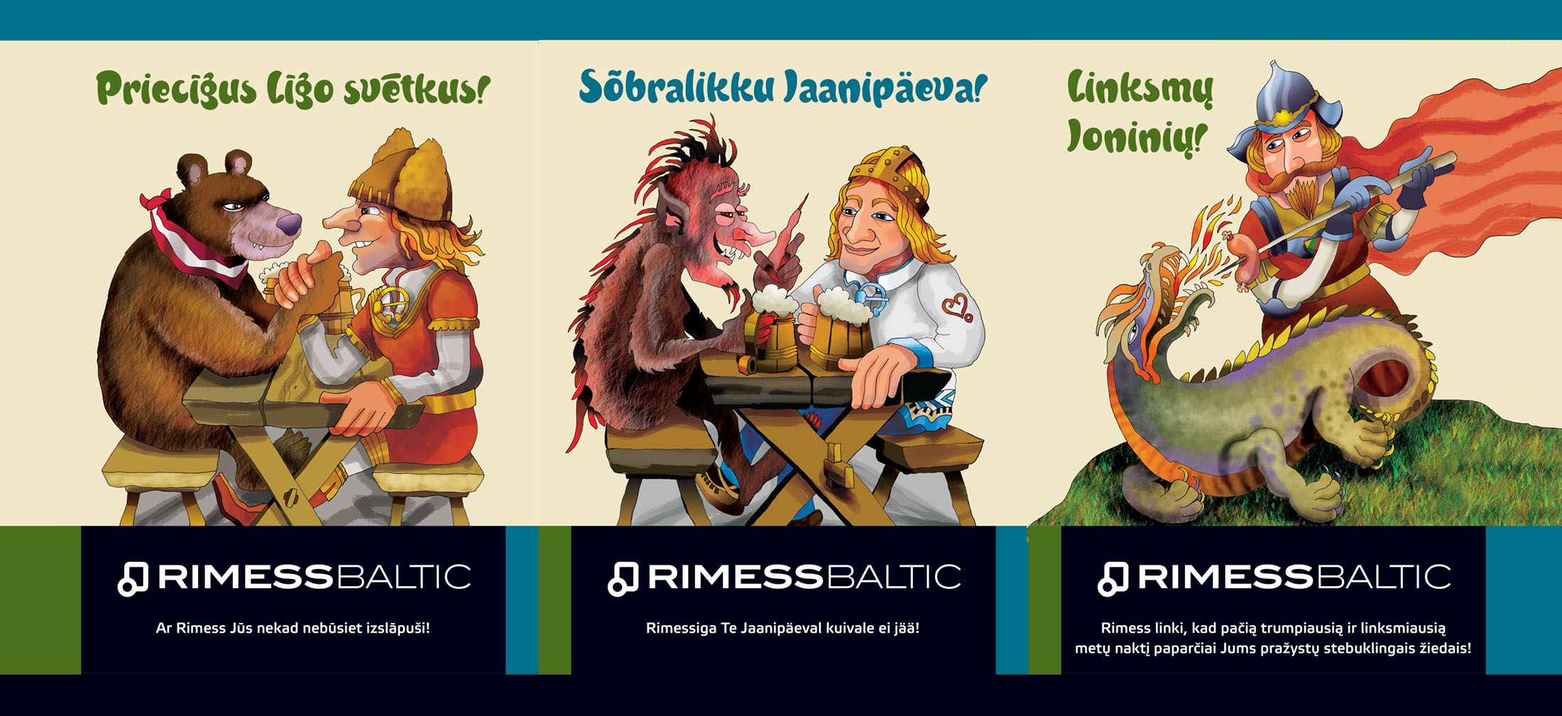 Klientidele 2011. aastal jaanipäevaks saadetud õllekast sisaldas Eestist, Lätist ja Leedust üht õlut. Eesti ja läti keeles soovitakse head jaanipäeva ja kinnitatakse, et Rimessiga janusse ei jää. Leedu keeles soovitakse samuti head jaanipäeva ning et kingisaaja jaoks õitseksid sõnajala maagilised õied aasta lühimal ja rõõmsaimal ööl.